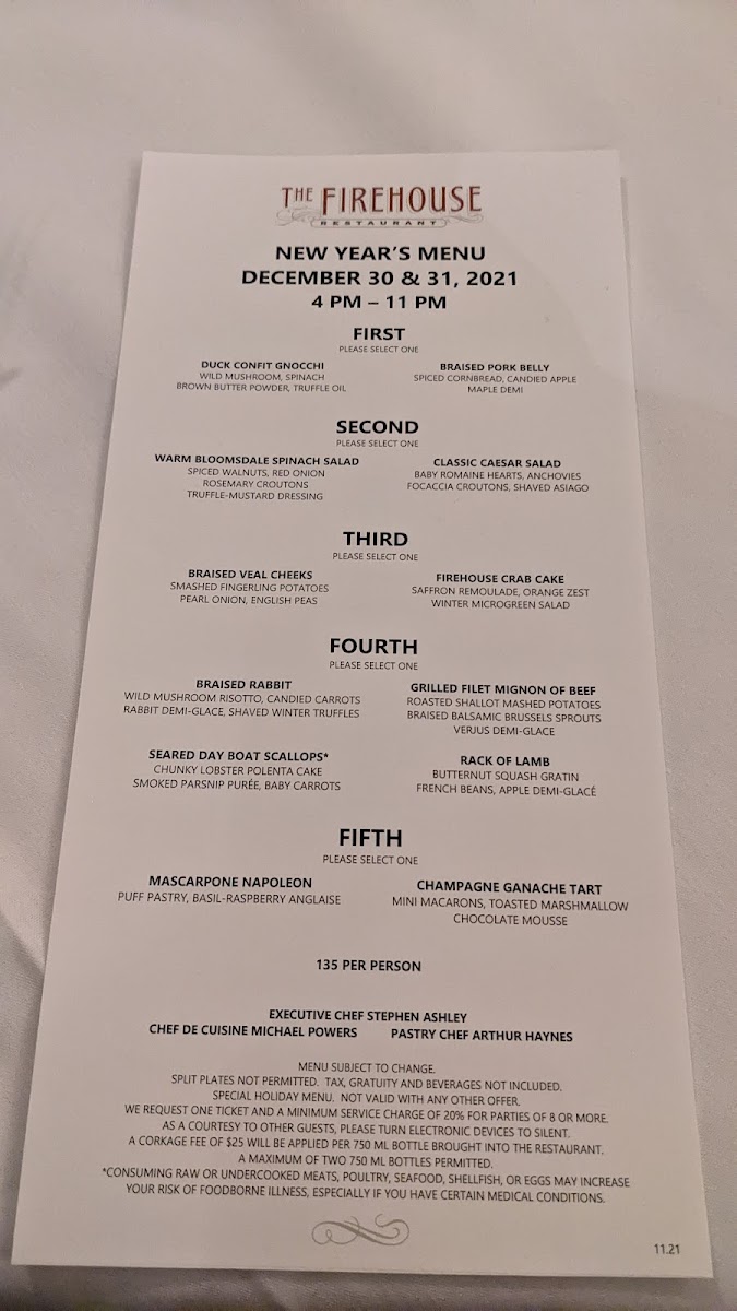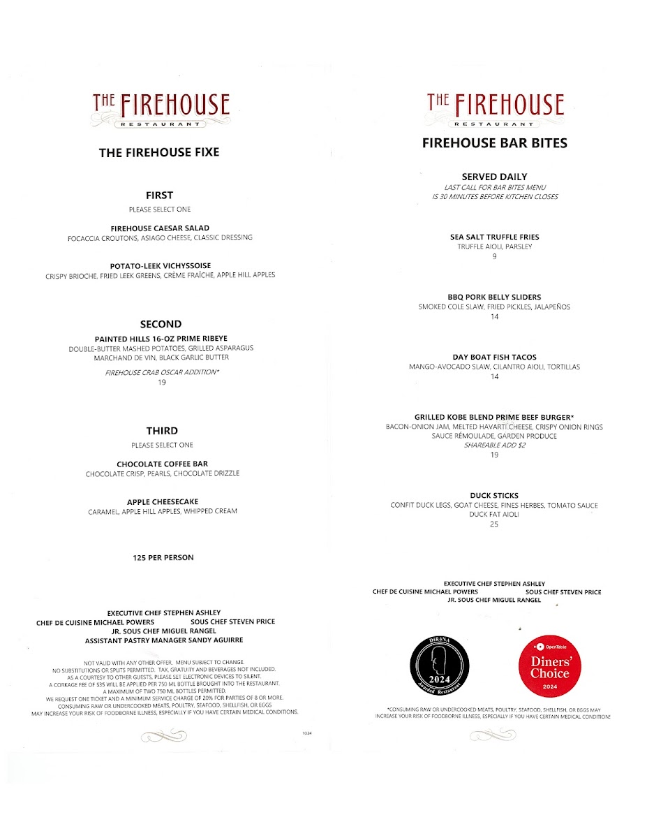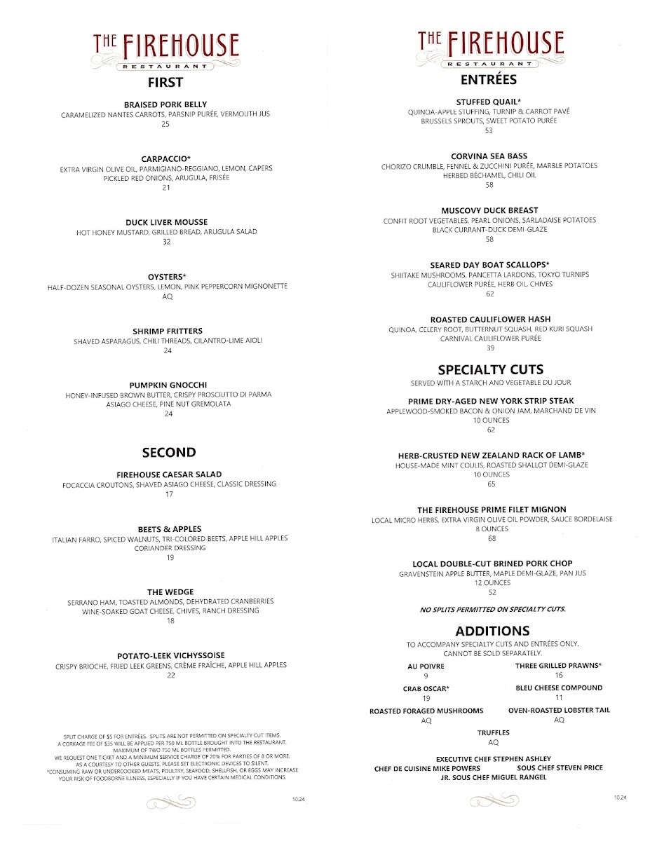 Introducing the Menu at The Firehouse Restaurant